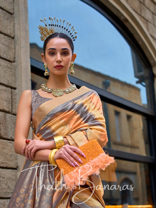 Latte Brown Banarasi Jacquard Tissue Silk Saree with Zari Work