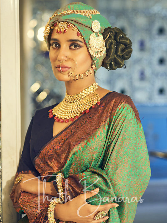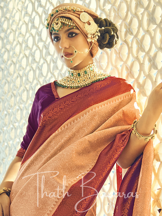Brown-red multicolor pure patola silk with paithani geometric pallu
