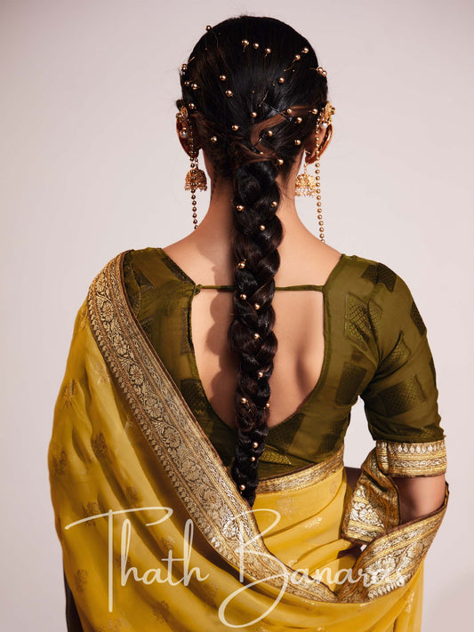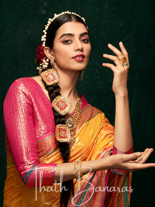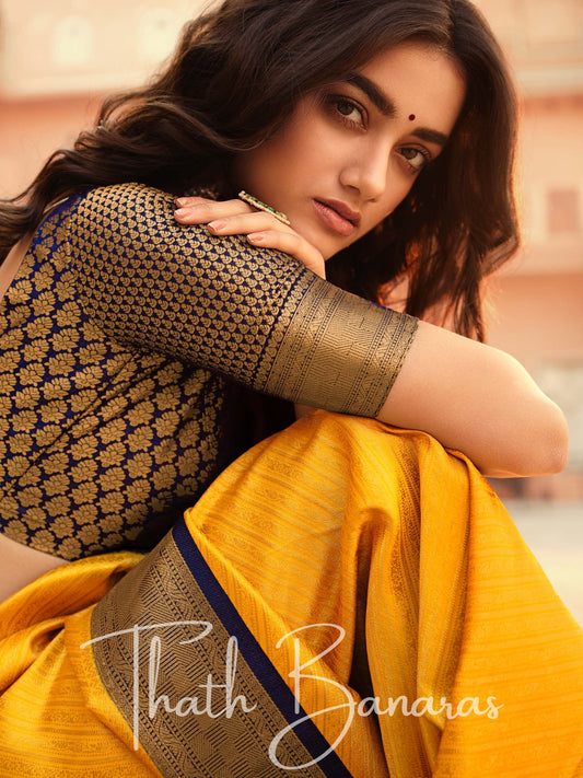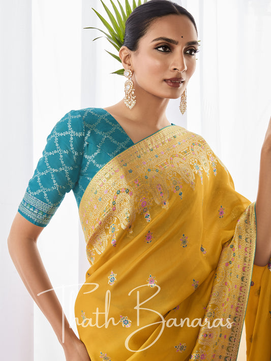 Mustard Yellow Kora Silk with Designer Minakari Pallu & Fancy Blouse