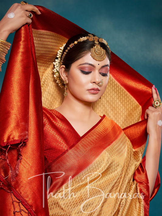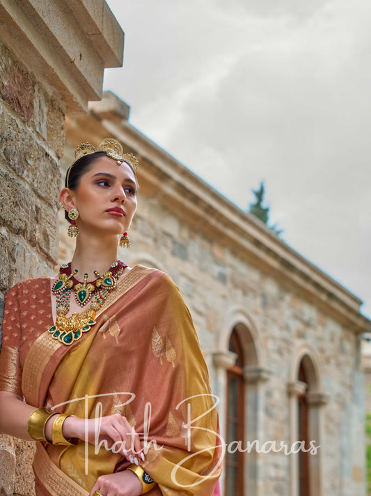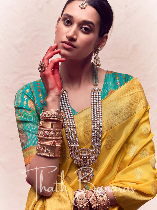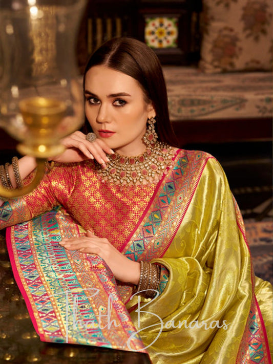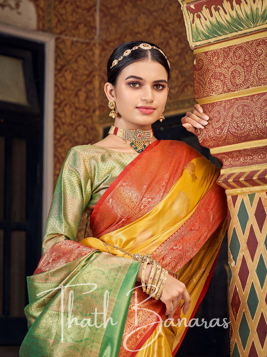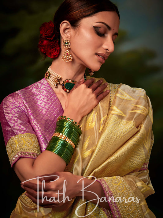 Medallion Yellow Banarasi Jacquard Tissue Silk Saree with Zari Work