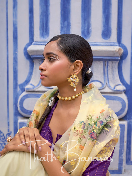 Vibrant Yellow Purpel Saree with Zari and Embroidery work