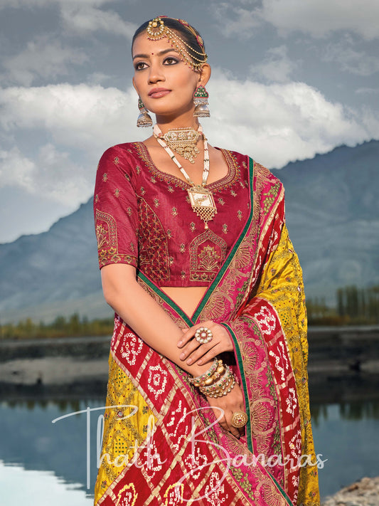 Mustard Yellow Pure Gajji Bandhej Satin Saree