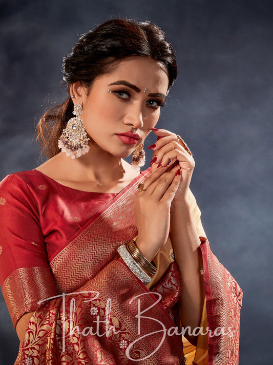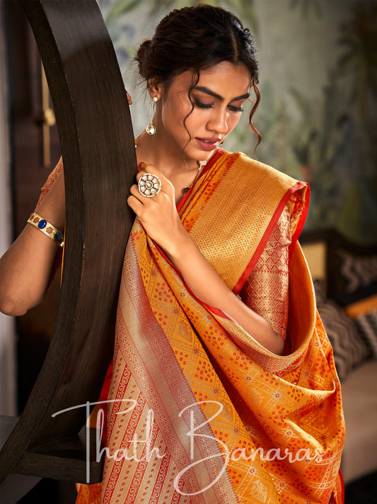 Sunshine Yellow Banarasi Organza Silk With Contrast Blouse And Pallu